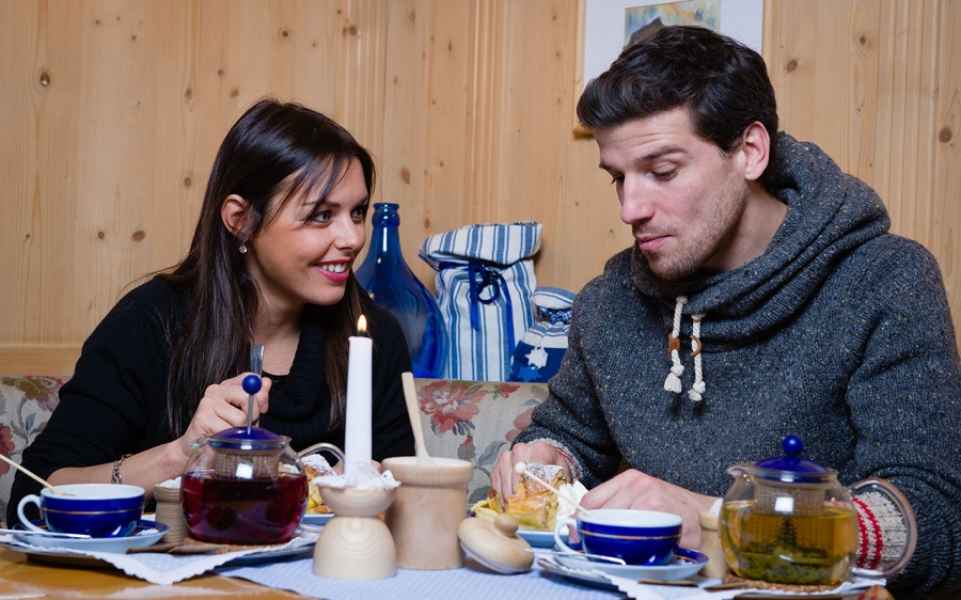 The Tea room in our B&B in the Dolomites is one of the most original ones in Corvara. Stüa dal Tê, located directly in Garni Raetia in Alta Badia, is welcoming you to take the well-deserved rest from your numerous activities and enjoy a nice cup of tea or coffee with a fresh tasty treat prepared daily for you. You will get to select from a wide variety of world-known premium black teas like Darjeeling, Ceylon, Kenya; green teas such as Sencha, Bancha, Gunpowder; or try one of our herbal teas or fruit infusions. We also carry a wide selection of alcoholic and other non-alcoholic beverages, such as thirst-quenching beers, delicious local wines, tasty grappas and of course the famous 'Illy' coffee.